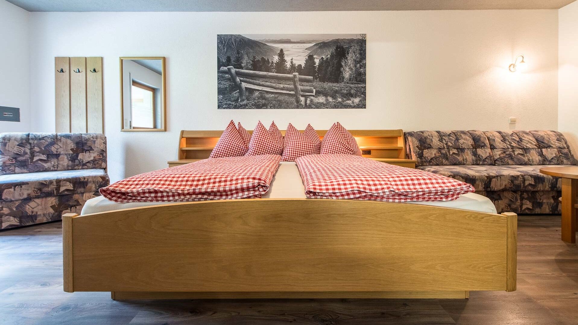 Dotazioni: Letto matrimoniale & divano letto/poltrona singola Camera bambini separata con 2 letti singoli Pavimento in laminato, scrivania TV a schermo piatto, cassaforte, Wi-Fi gratuito Balcone con vista sul mondo montano della Valle Aurina